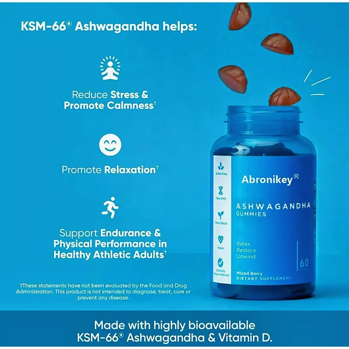 • ASHWAGANDHA GUMMIES:natural energy supplement made with ashwagandha root, guaranteed sustained energy. vitamin D2 C gummies are flavored with a delicious mixed berry. Satisfy your palate while you Relax, Restore and Unwind.