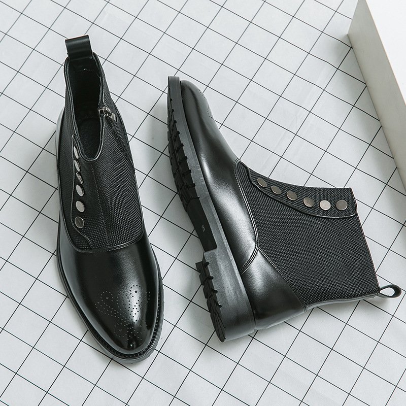 Cloth Stitching High Top Wild British Martin Casual Men’s Leather Shoes