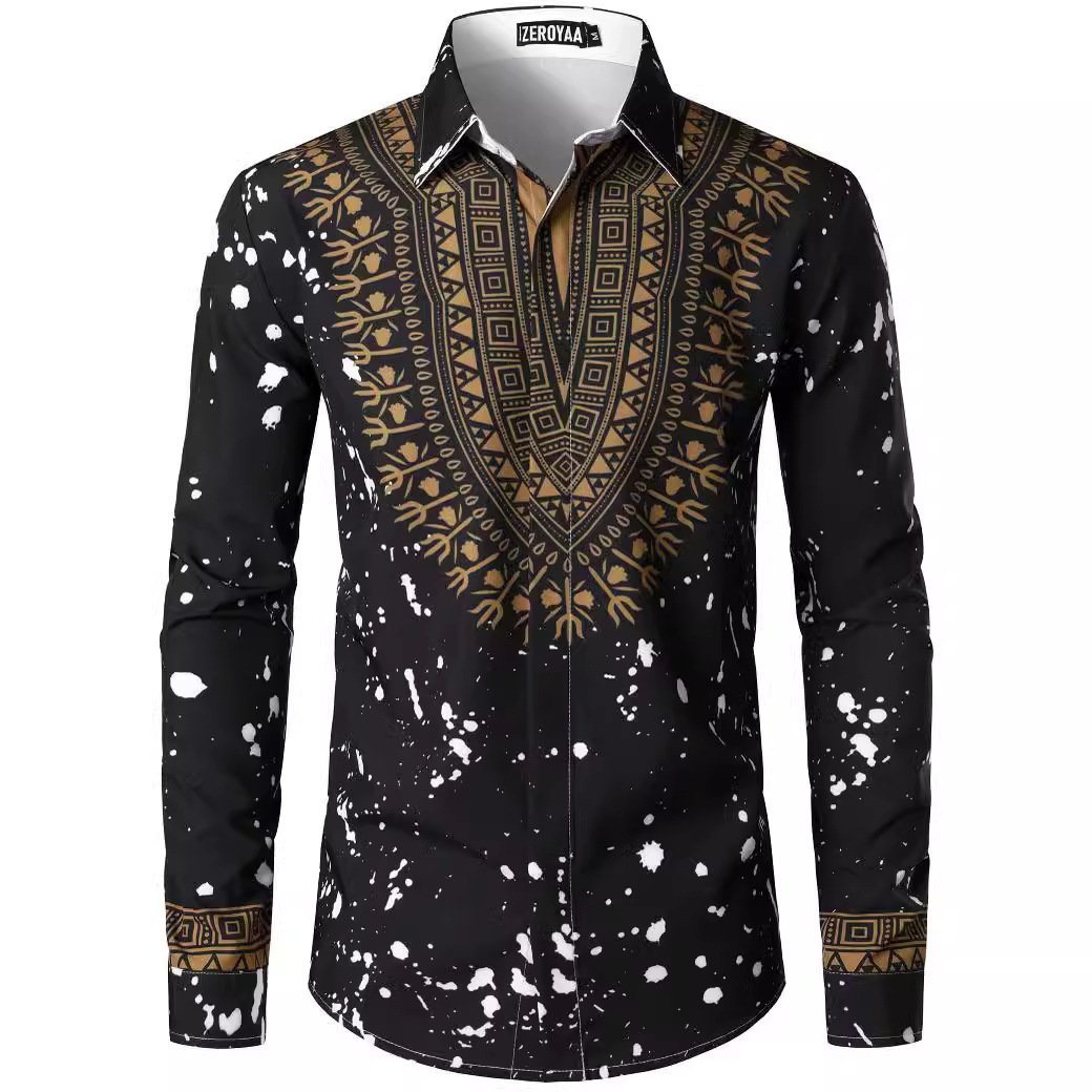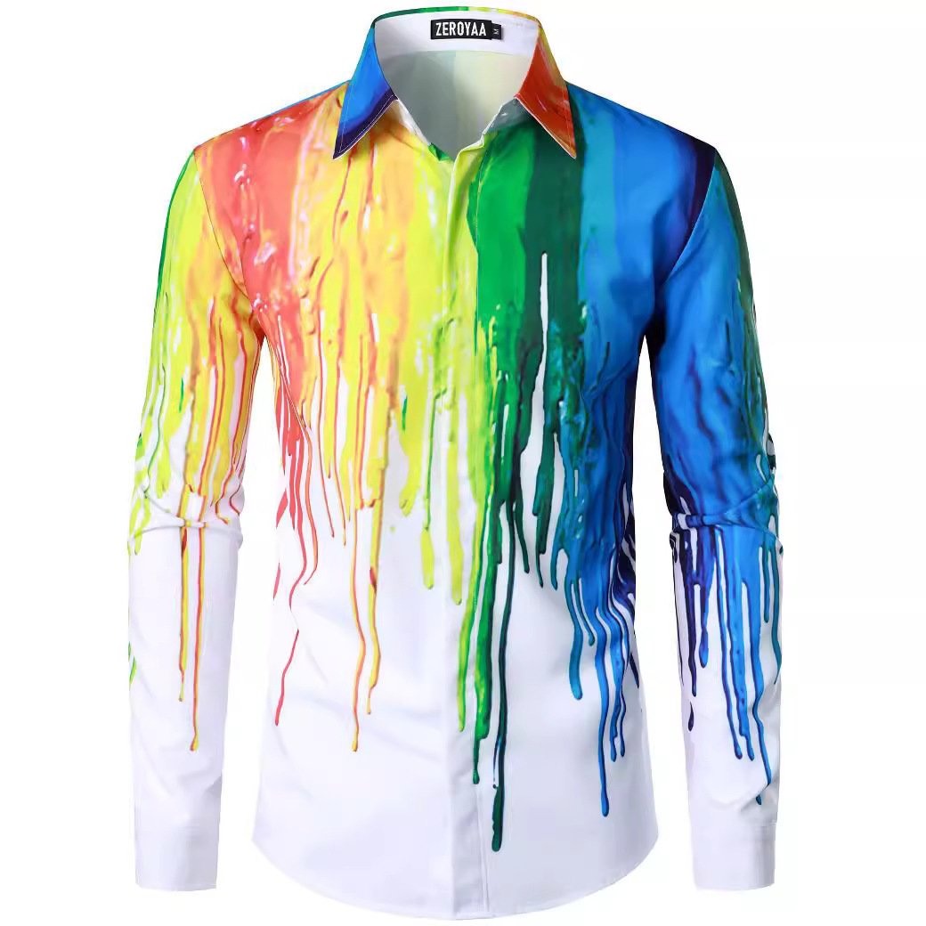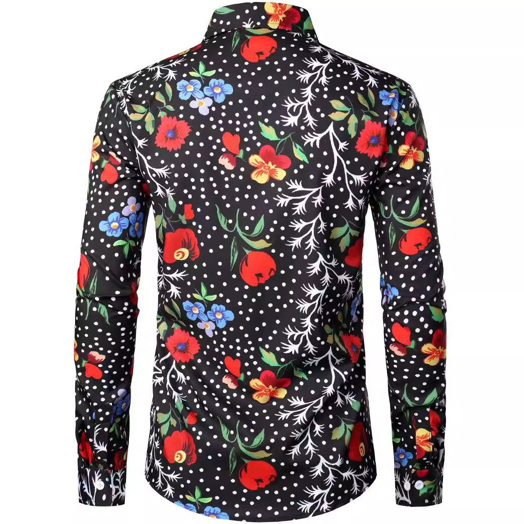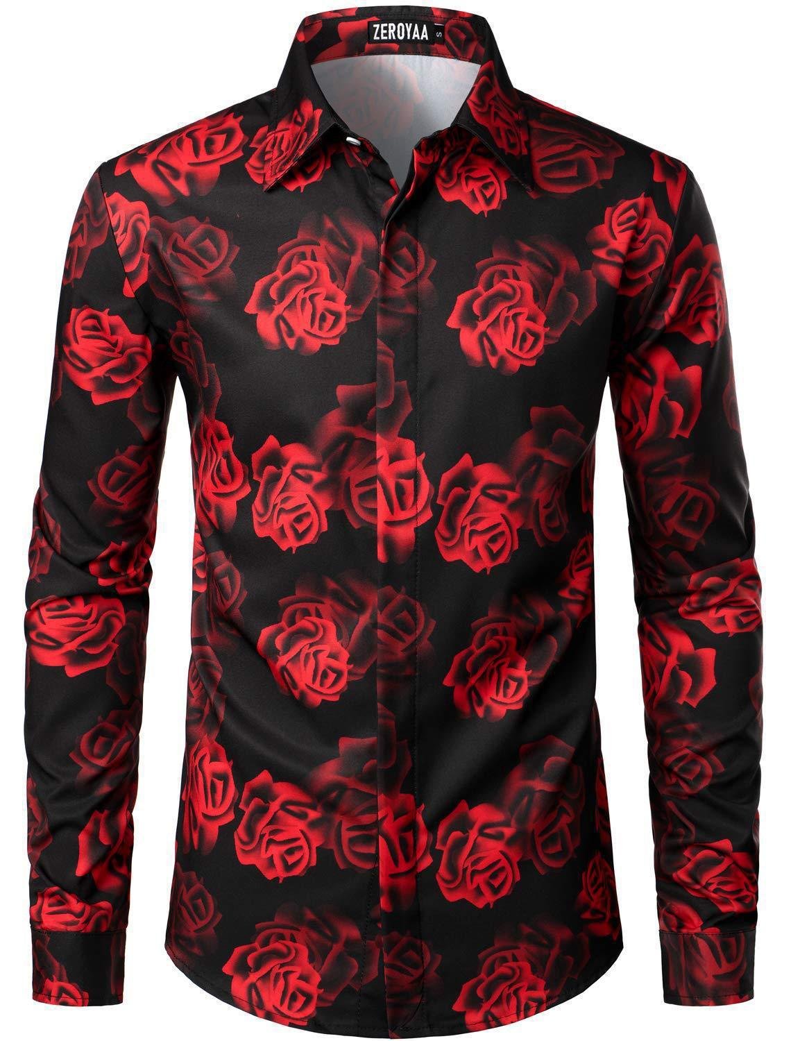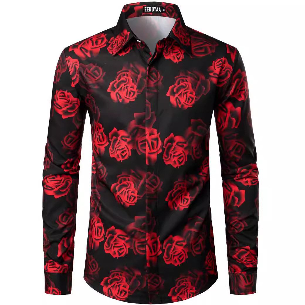 Fashion 3D Rose Printing Men’s Long Shirt
